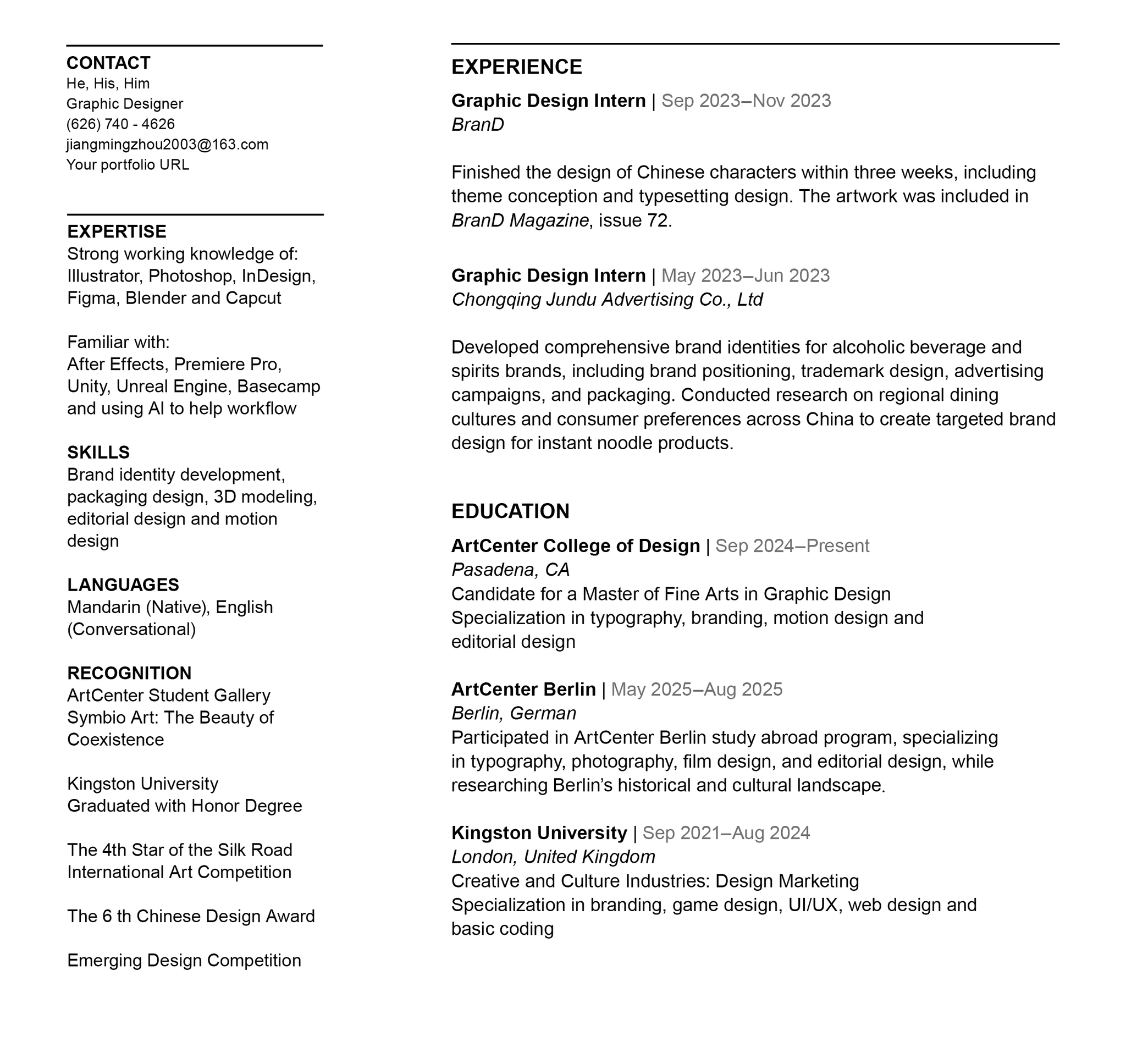 My parents once ran a hotel together, and watching them work side by side made me realize how different backgrounds and skillsets can complement each other in unexpected ways. In my own work — whether 3D modeling, motion graphics, or traditional graphic design — I deeply value collaboration, as this diversity of approaches helps me contribute more effectively to any team. Just as my parents showed me, the best solutions come from combining different perspectives and expertise; since design is a re-expression of a designer's past experiences, the collision of different minds always creates something far richer than any single vision could achieve.